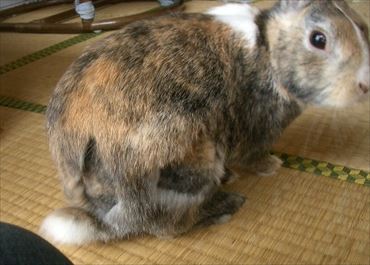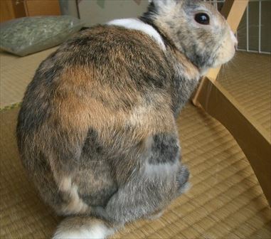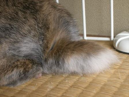 | 3才8ヶ月 こちら側も毛を手で引いて抜いた。その結果、体温が奪われ、5月中旬だが冷えによりひどいうっ滞になった。反省。 |