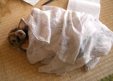 | 3才9ヶ月 毛を抜かれて体温が保てず何度かうっ滞を再発。シルクの布団をかけて暖かいところで休む |