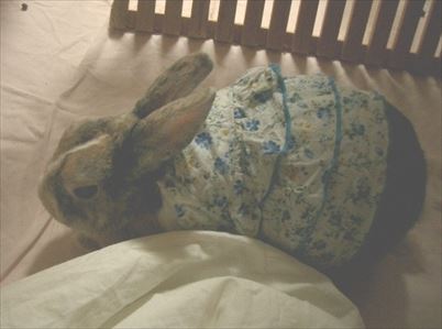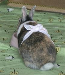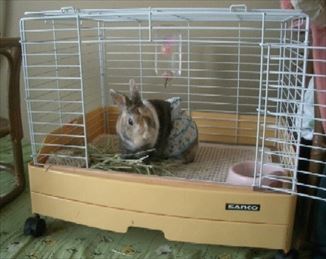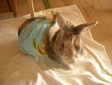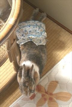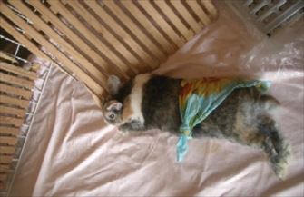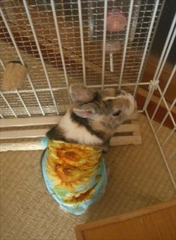 夜は服が脱げないようにケージに入れることにした。ケージはソアホック対策も兼ねる。 |