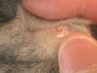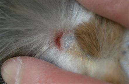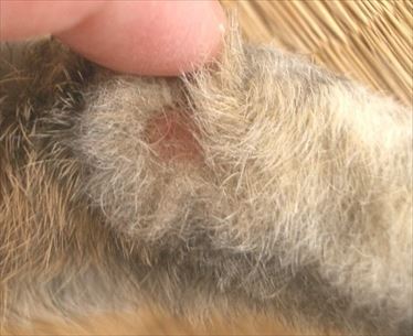 皮膚炎跡の傷。小さいけど、傷がかゆくて周りを齧る→傷になる、の繰り返しで、ずっと治らなかった。