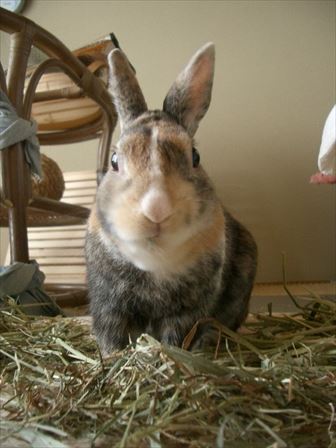干し草を食べながらおすまし