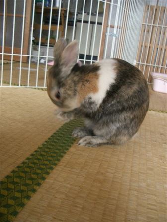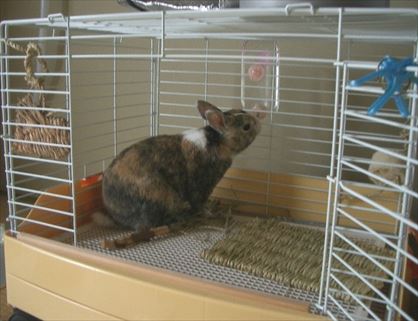 ケージの中に設置しているボトルで水を飲む